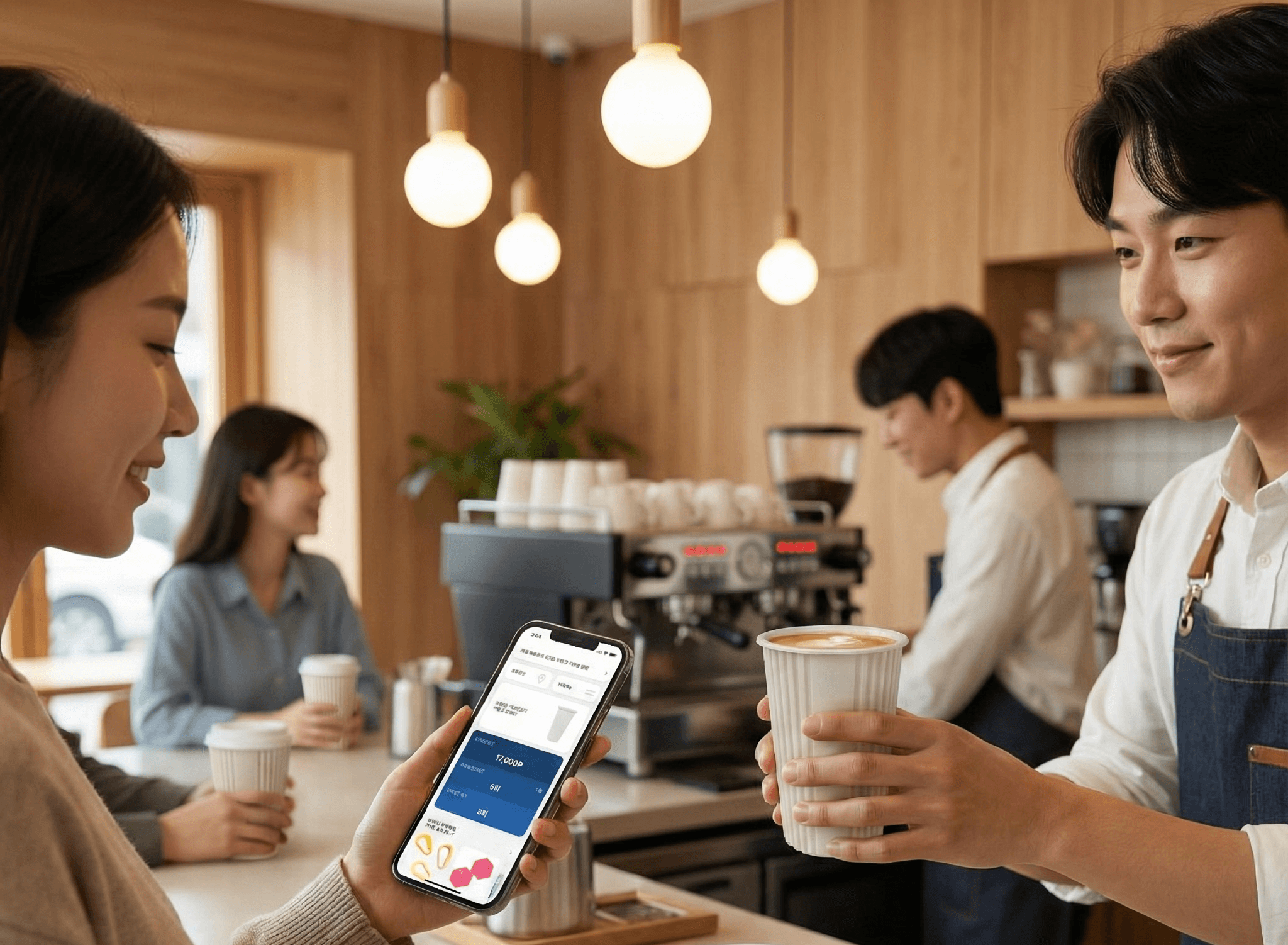 태깅한 아란테컵을 카운터 직원에게 전달하고 음료를 주문합니다.